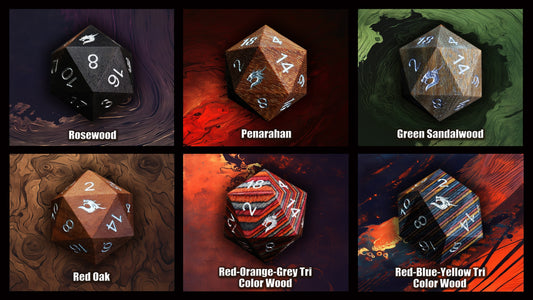 With a deep blue base interwoven with vibrant wooden fragments, this dice set captures the essence of stardust scattered across the night sky. Each die is a unique piece of art, embodying the mystique of the cosmos and the endless possibilities of fate with every roll.