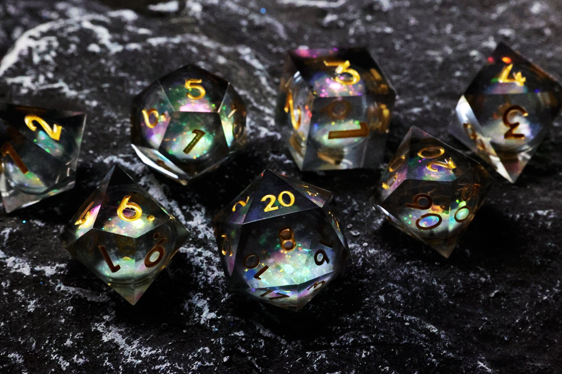 DiceNest D&D Rainbow & Starry Sky Liquid Core Dice Set – Sharp-Edged Resin