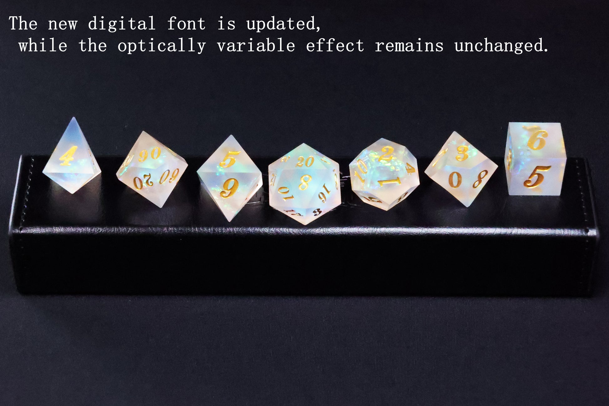 These dice roll evenly and reliably, making them perfect for actual gameplay. Their sharp edges enhance their brilliance, giving them the feel of finely cut gemstones.