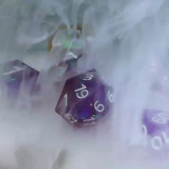 To make each die even more mystical, we added mica powders and iridescent foil flakes, forming a shimmering, dreamlike core within the resin. When light hits it just right, you’ll glimpse a beautiful glow inside—like catching a glimpse of magic.